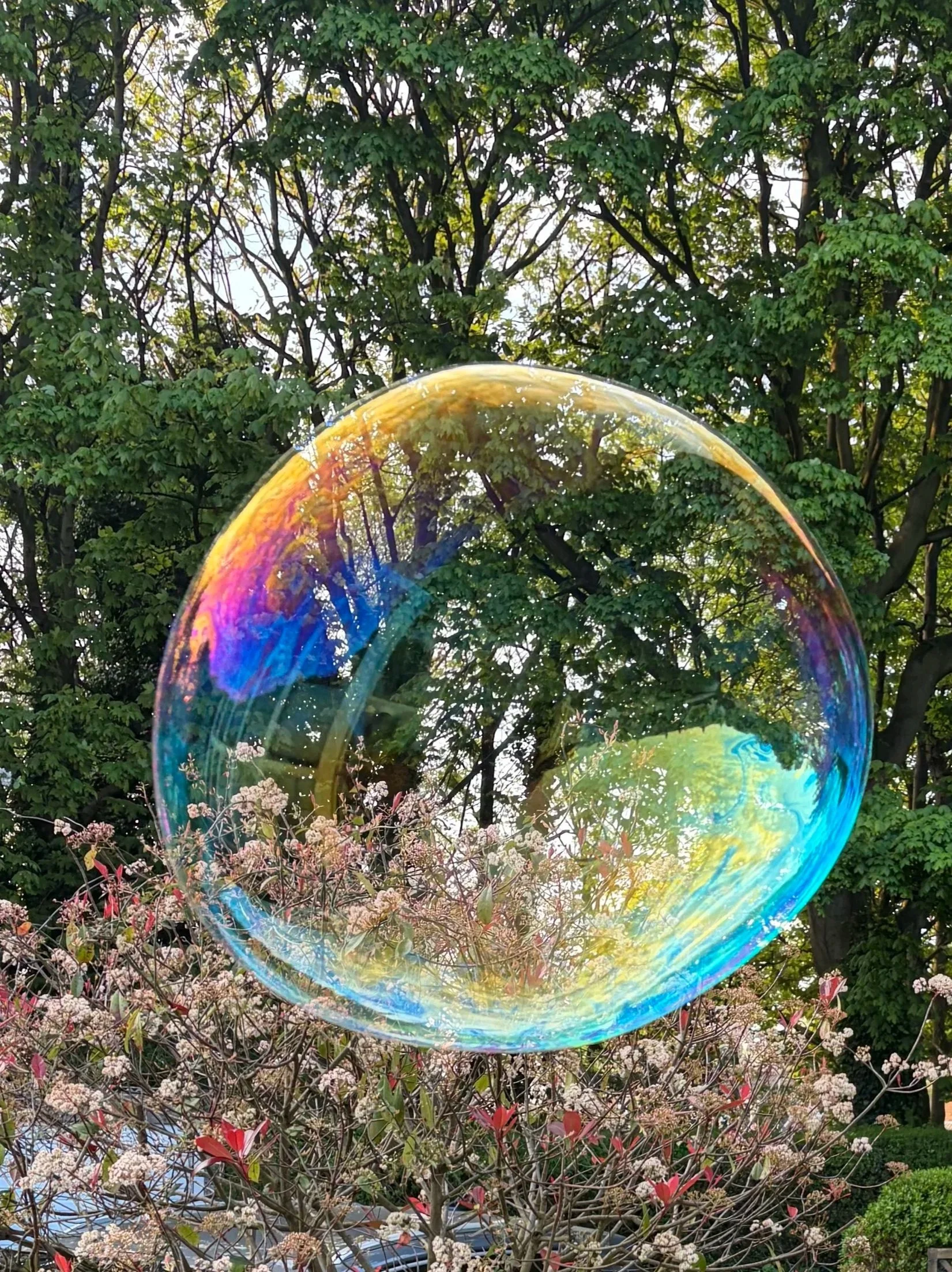 When you zoom in on a giant bubble it’s the most incredible thing. So cheap to make, so fleeting, but what an unbelievable moment, as it undulates. You hold your breath whilst trying to grab your phone quick enough to capture it before it pings into something and evaporates. Likewise the act of trying to blow it, or attune to the breeze in order to give it a chance of lifting into the sky is an act of concentration and intentionality. Spent 30 minutes this morning in bubble bliss on the front porch. Better than doom scrolling. Can’t do much about the patriarchy.